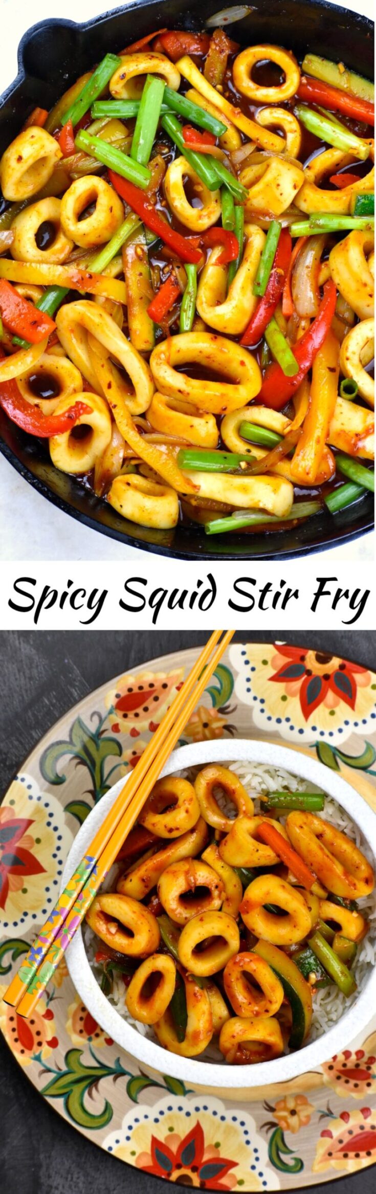这麻辣鱿鱼炒是一道独特而简单的亚洲海鲜食谱,非常美味!