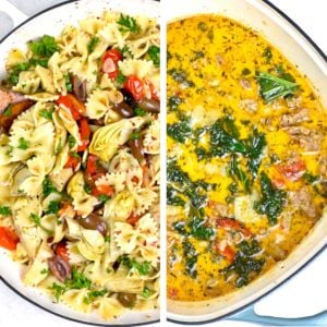 这款奶油托斯卡纳汤是最舒适的一碗。丰盛的香肠,晒干的番茄和羽衣甘蓝(或菠菜)在美味的奶油肉汤中……真是太棒了。而且超级简单!你可以在30分钟内把这碗碗端上餐桌。