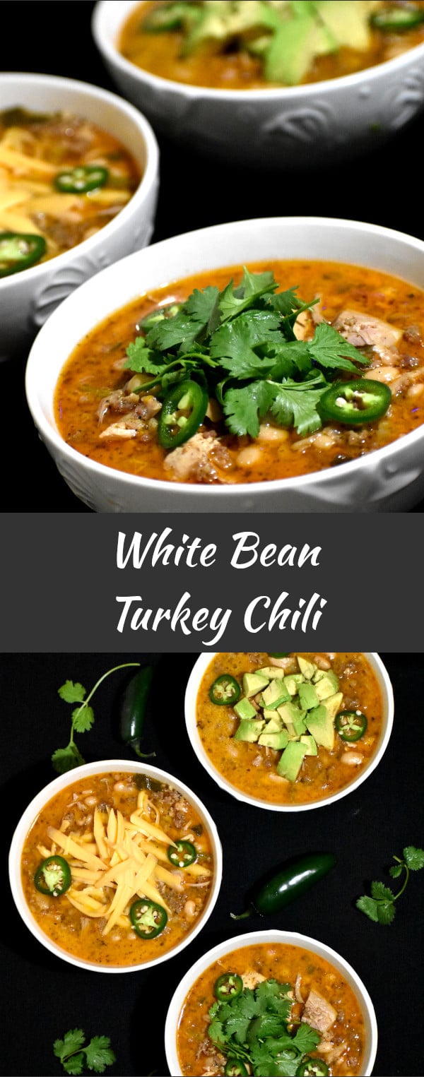 这款丰盛而令人满意的白豆火鸡辣椒是你剩下的火鸡的一大用处。香肠盖在上面。没有火鸡剩菜?用烤鸡试试吧!